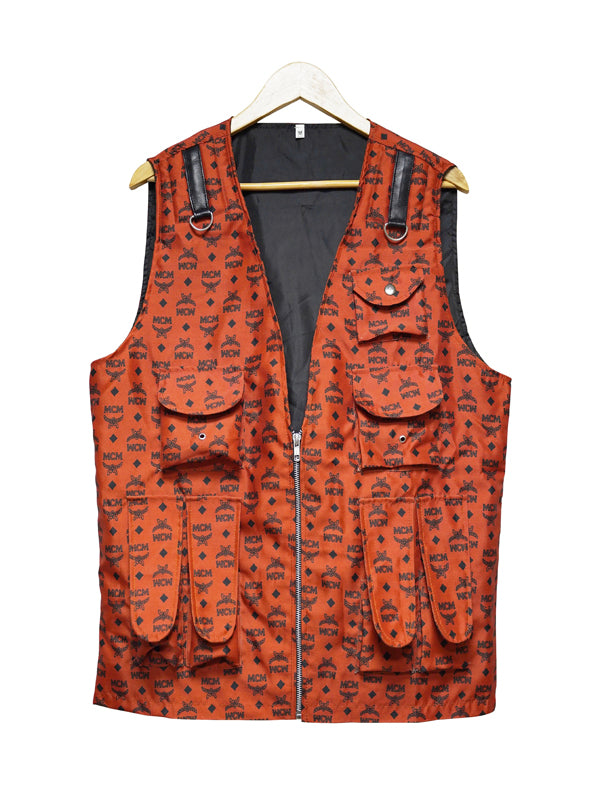 This stylish vest is crafted from high-quality cotton, featuring a vibrant orange design. The vest includes multiple pockets on the front, making it both fashionable and functional. The zipper closure adds convenience, while the D-ring accents provide a modern touch. The detailed craftsmanship ensures durability, while the unique design makes it a standout piece in any wardrobe. Whether you're dressing up for a special occasion or adding a stylish layer to your everyday look, this vest offers both comfort and versatility.